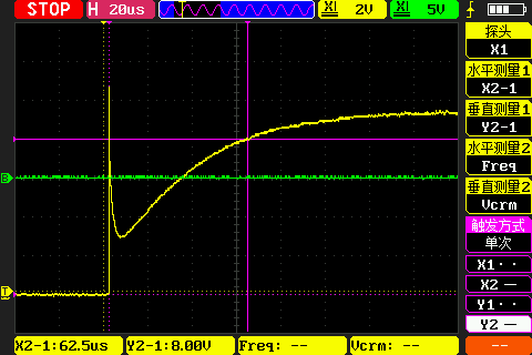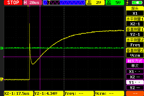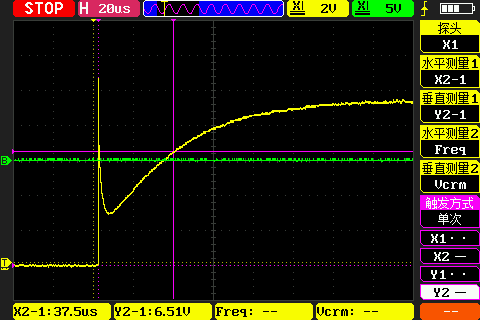 由于示波器无法直接测量电流,因此在回路中串联一个电解电阻\(R_0\),将示波器接在电阻两端。